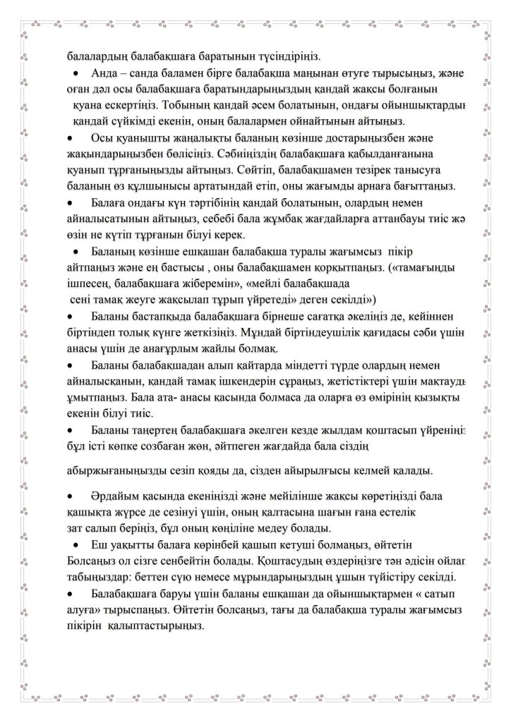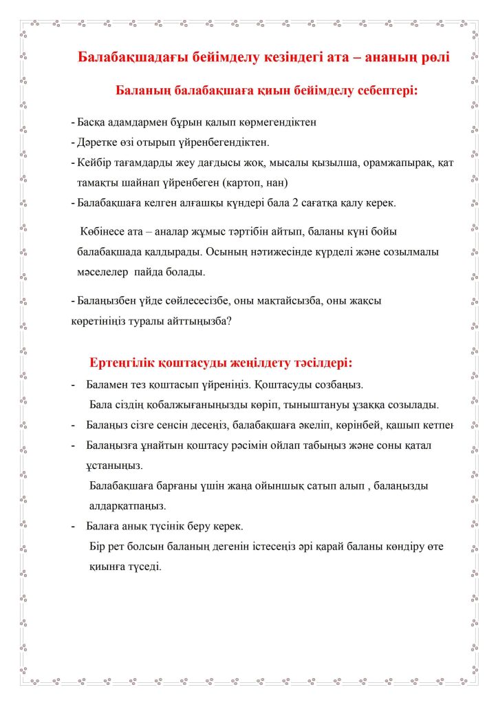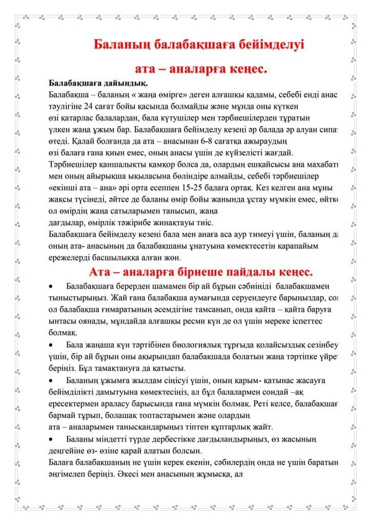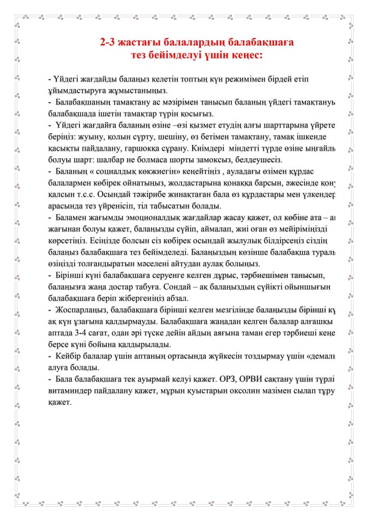 БАЛАНЫҢ БАЛАБАҚШАҒА БЕЙІМДЕЛУІ