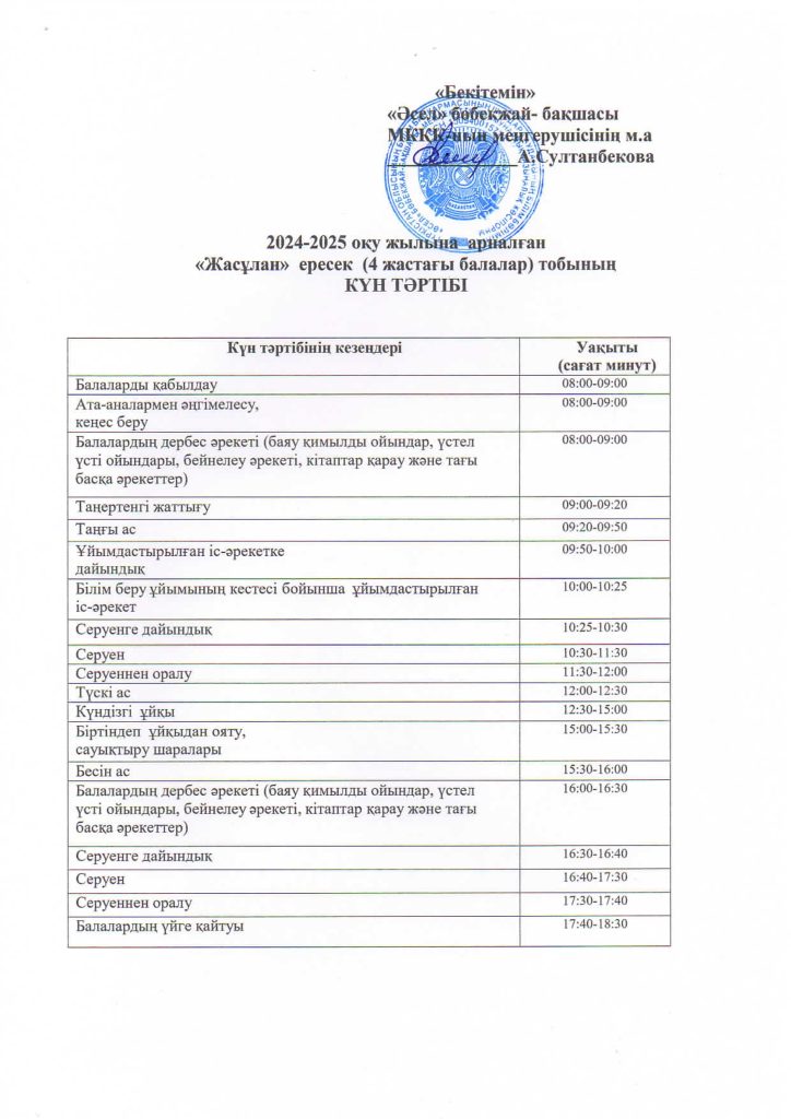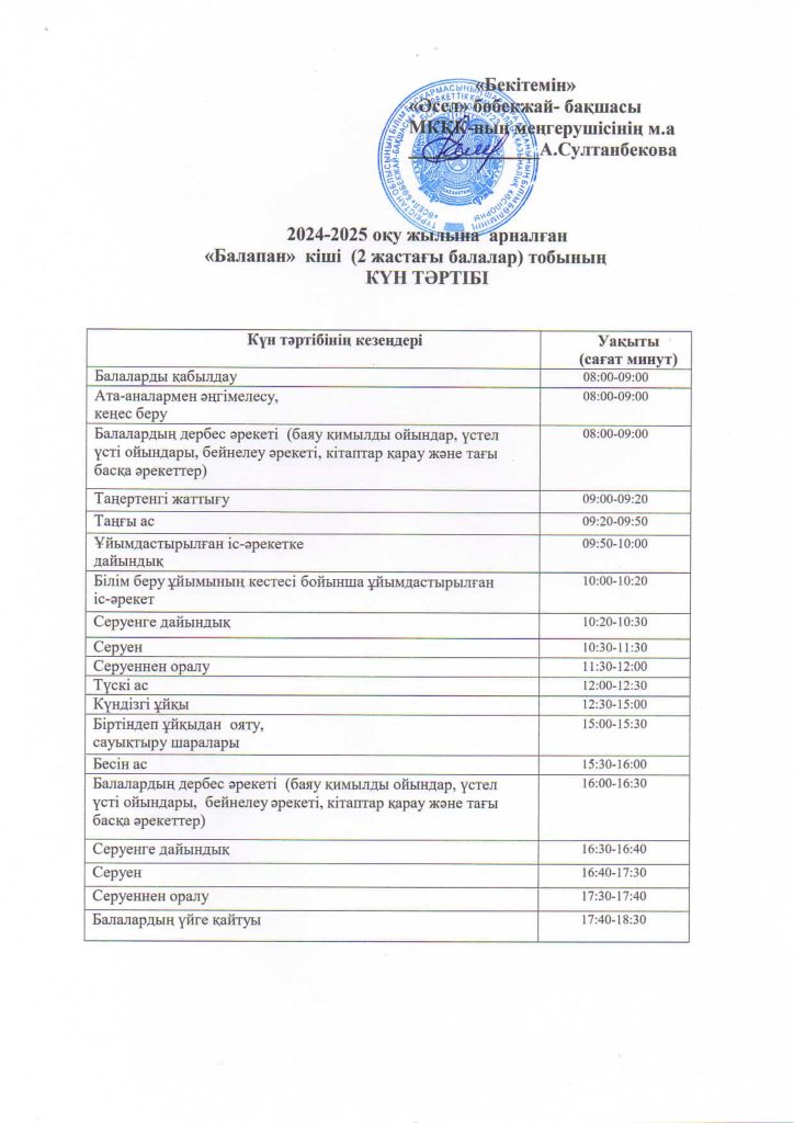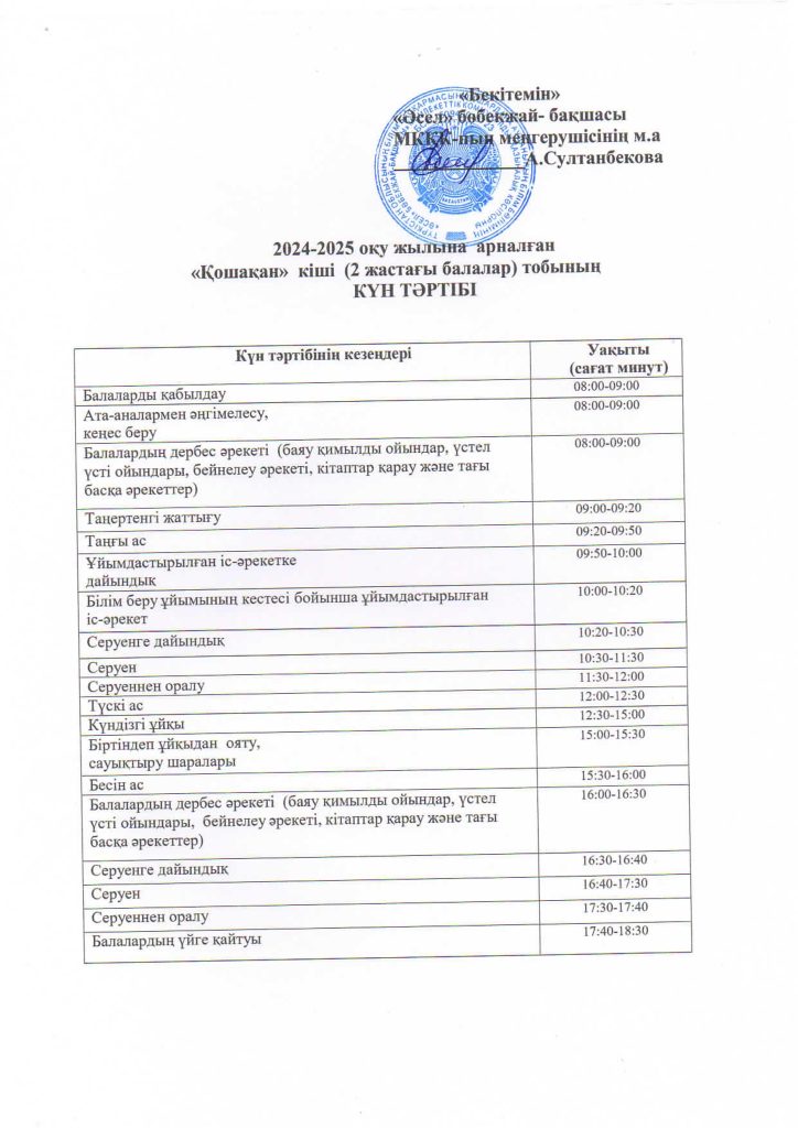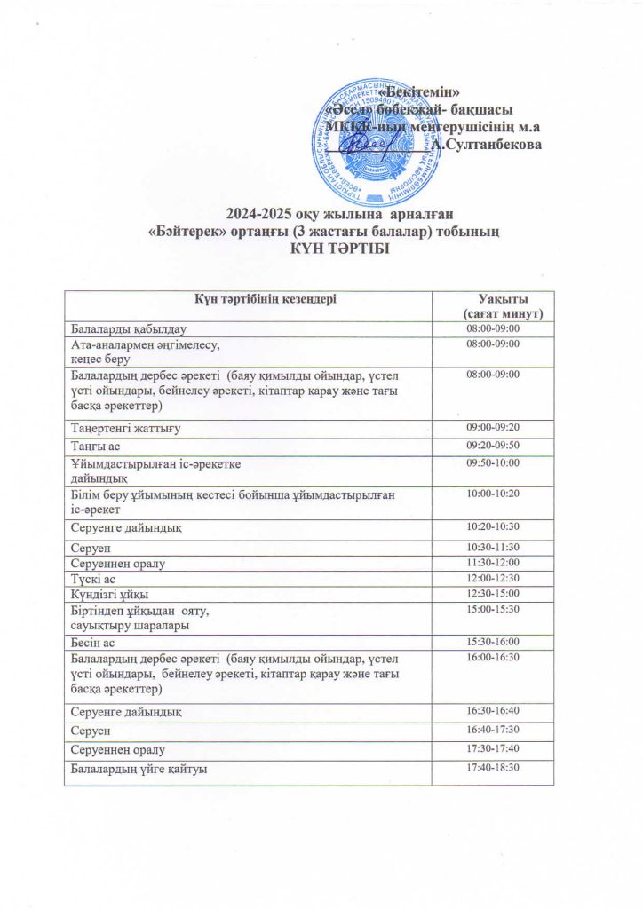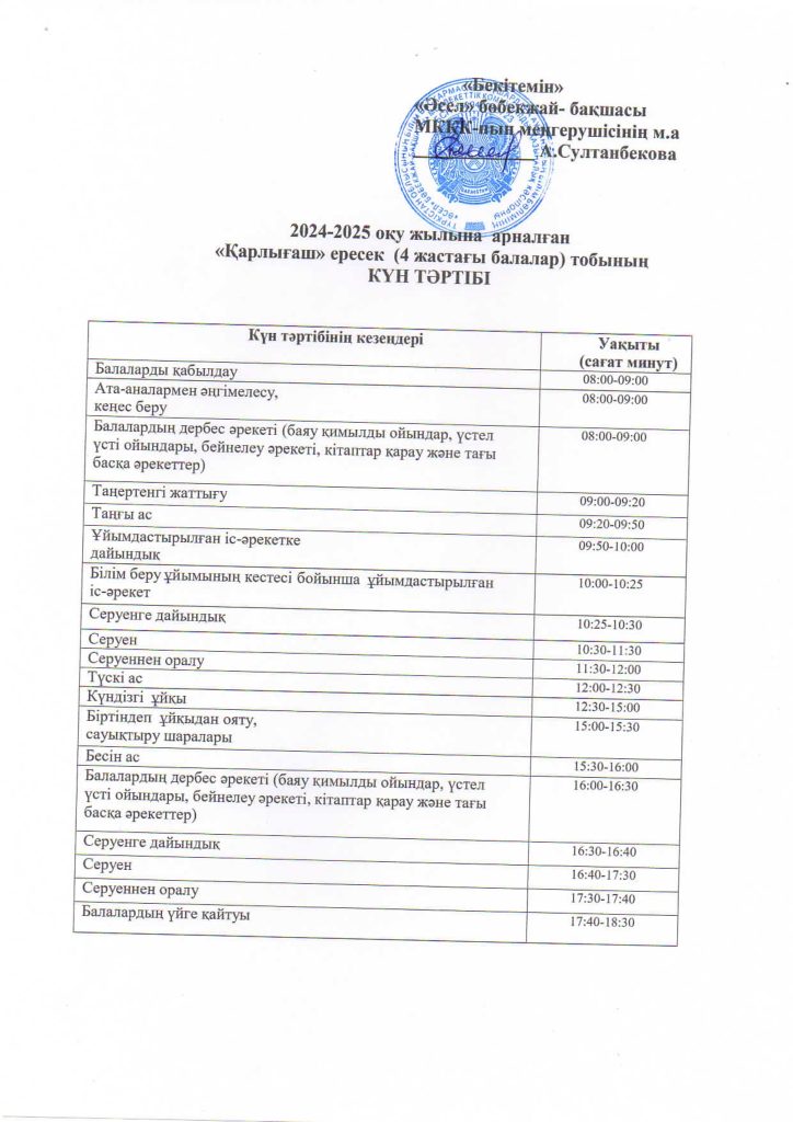 КҮН ТӘРТІБІ, ОҚУ ІС-ӘРЕКЕТ КЕСТЕСІ