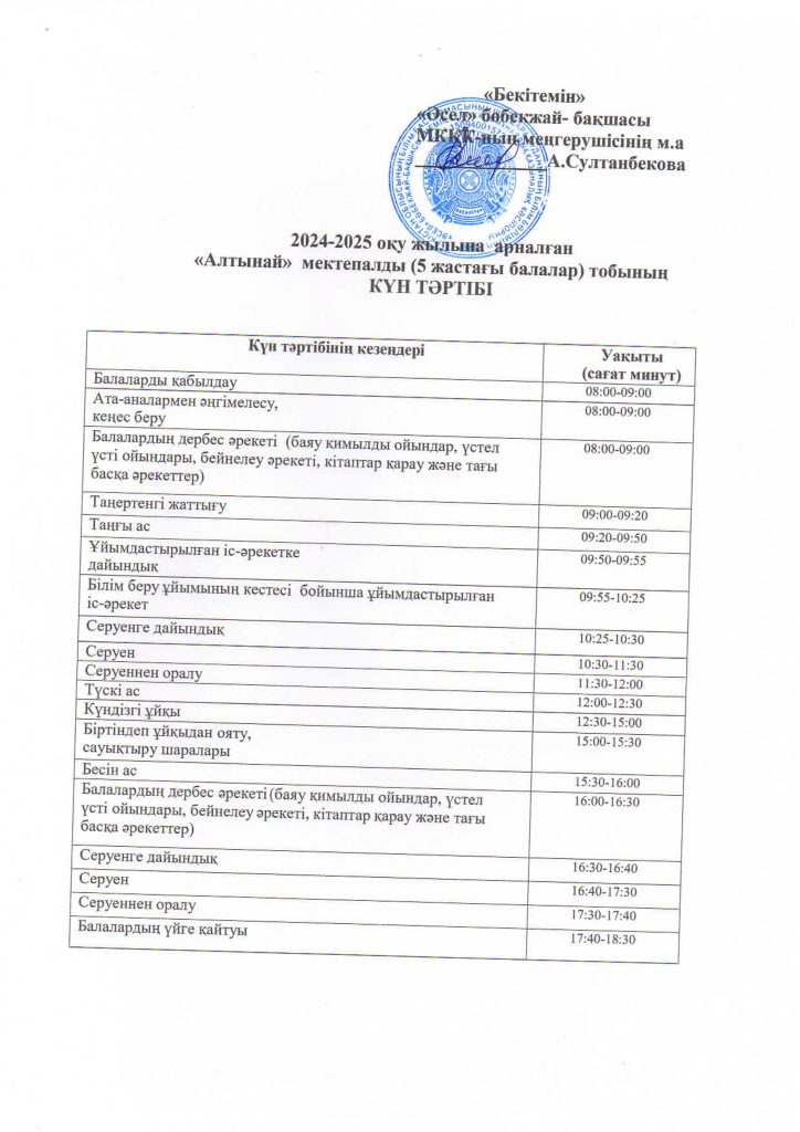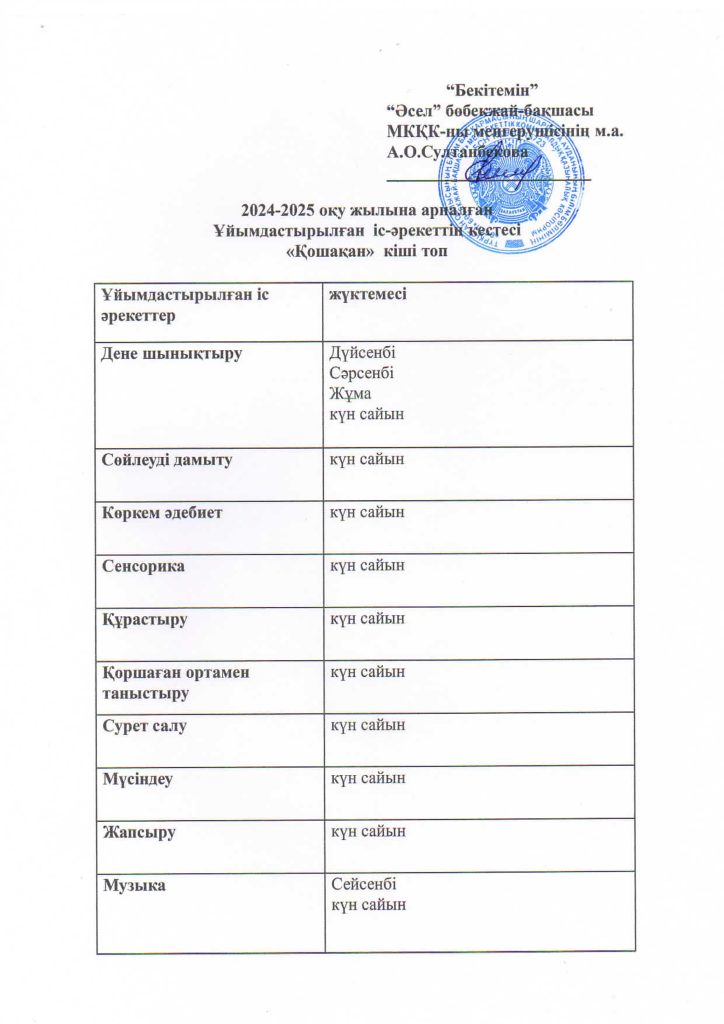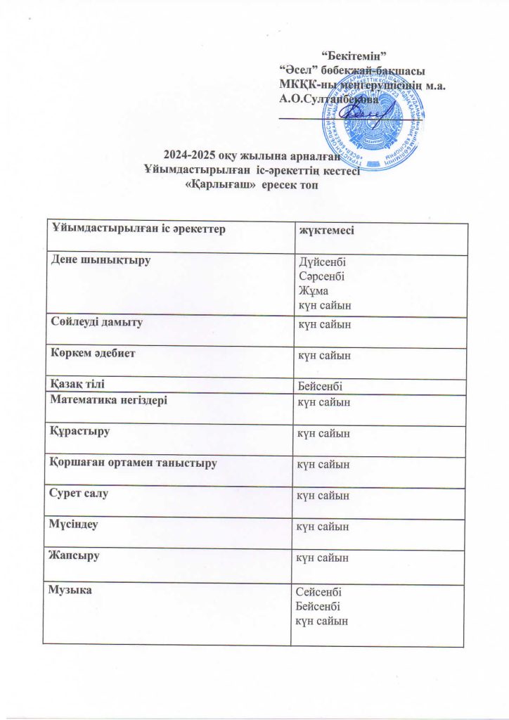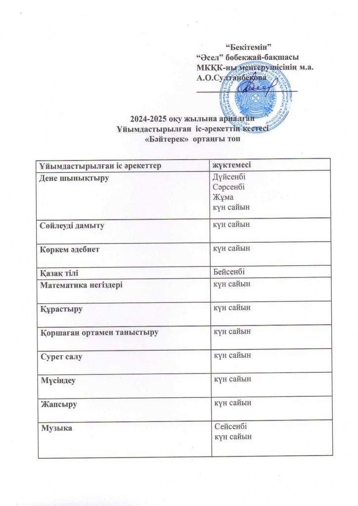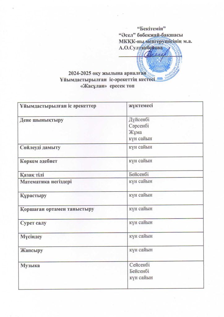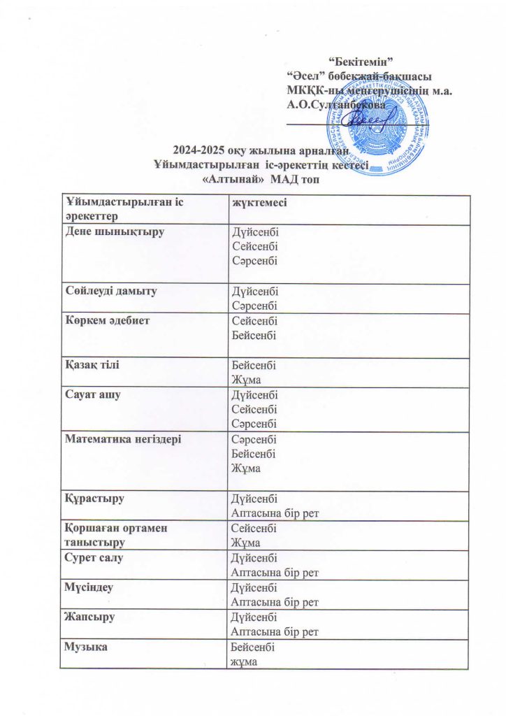 КҮН ТӘРТІБІ, ОҚУ ІС-ӘРЕКЕТ КЕСТЕСІ